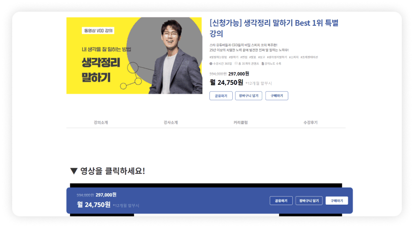 : ‘내 생각을 잘 말하는 방법’과 같이 강의를 통해 얻을 수 있는 혜택을 명시.