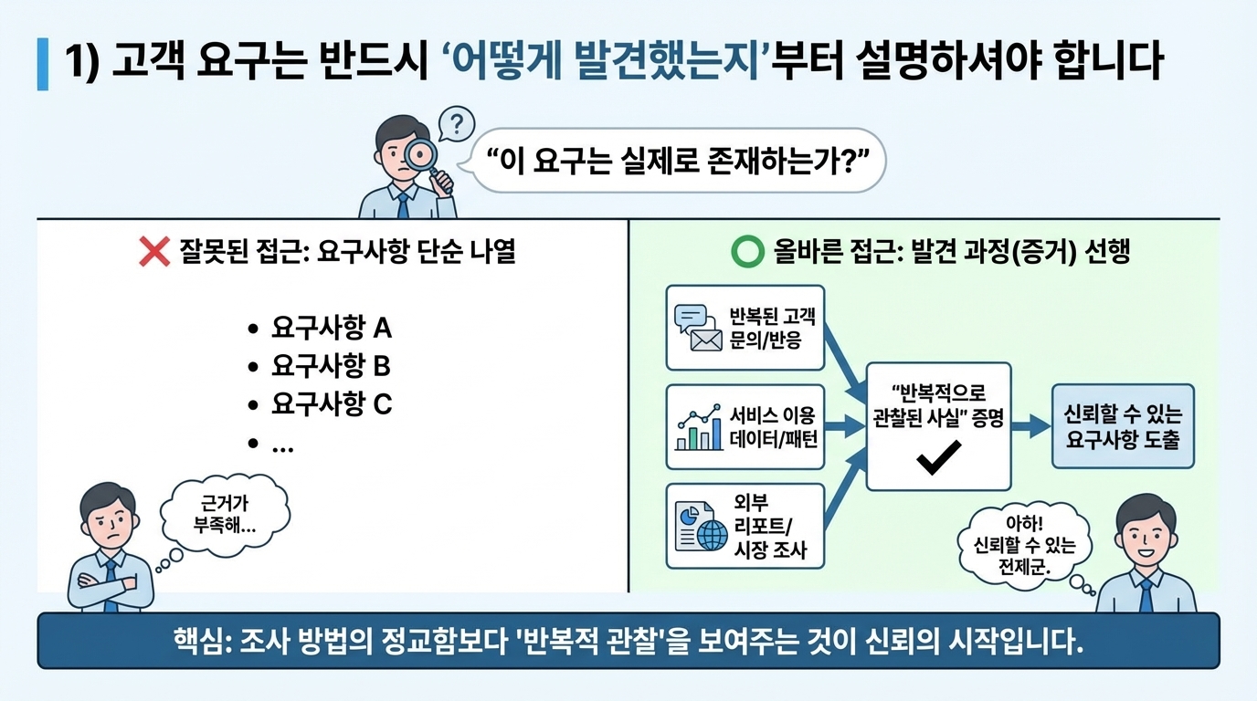 고객의 말을 정리하는 데서 멈추지 않고 요구를 발견하는 과정과 대응 방식이 하나의 전략으로 연결되어 있기 때문입니다.
