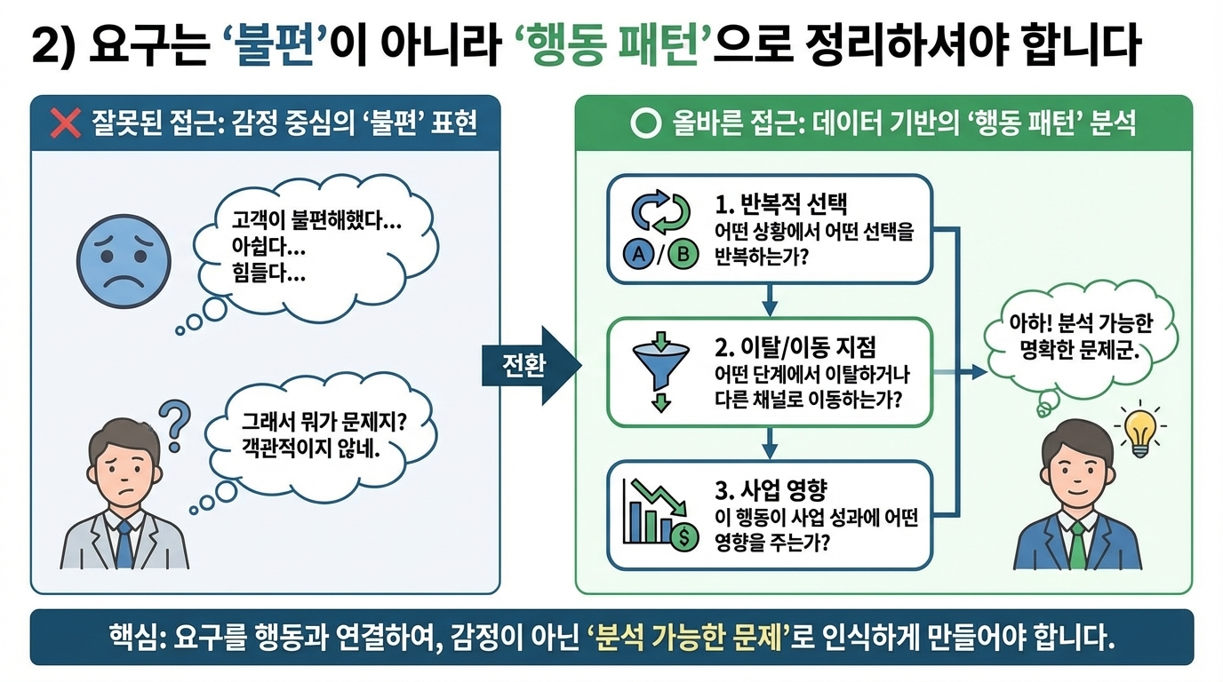 대신 반복되는 행동과 패턴을 통해 요구를 정의하고,