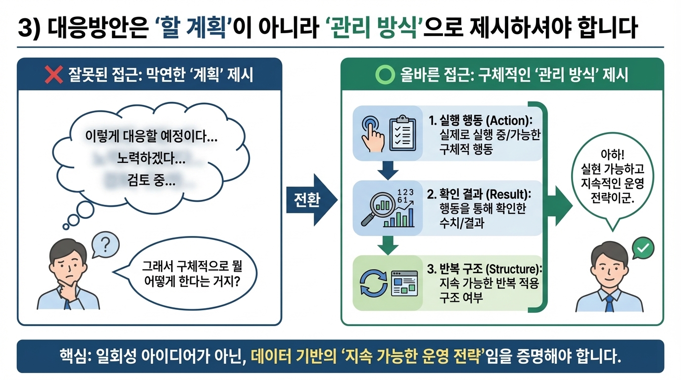 이 글에서 정리한 방식으로 대응방안을 작성하셨다면,