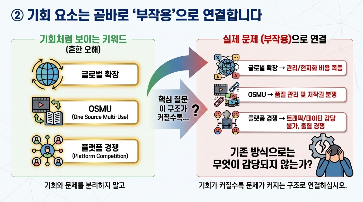 기회가 커질수록 문제가 커지는 구조로 연결하십시오.