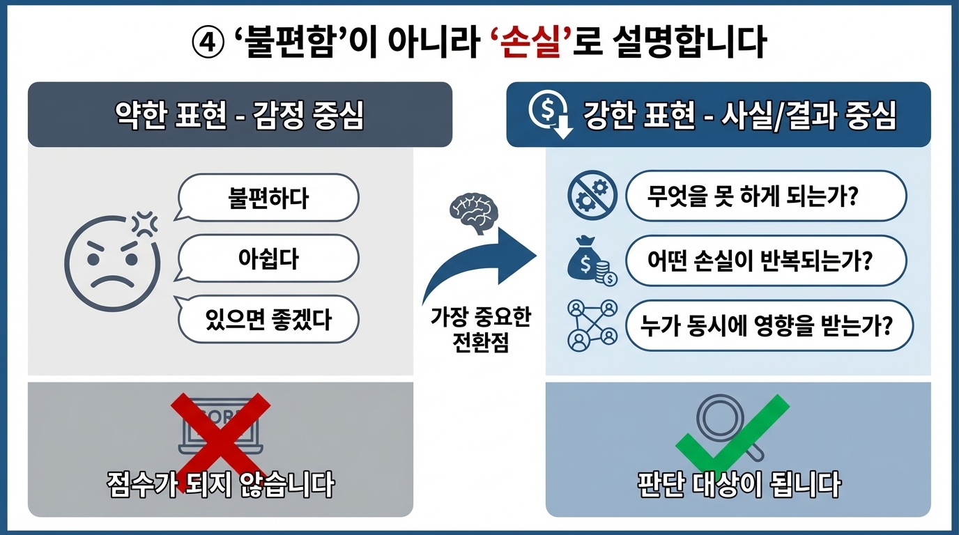“이게 없어서 계속 손해를 보고 있다”는 문제로 인식됩니다.