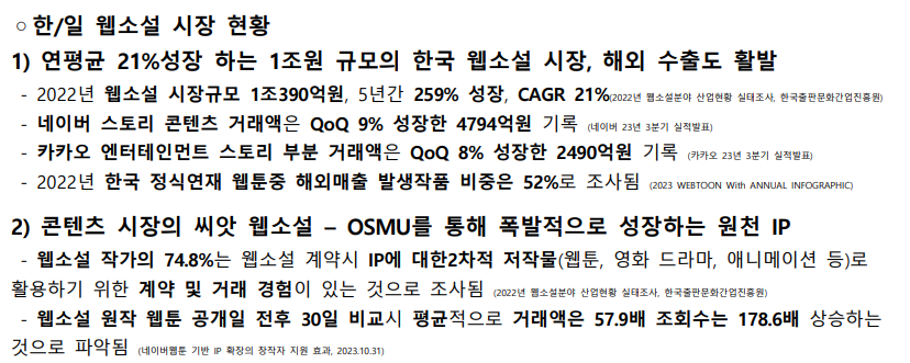 이 페이지는 웹소설 시장이 크고 성장하고 있다는 이야기로 시작합니다.
