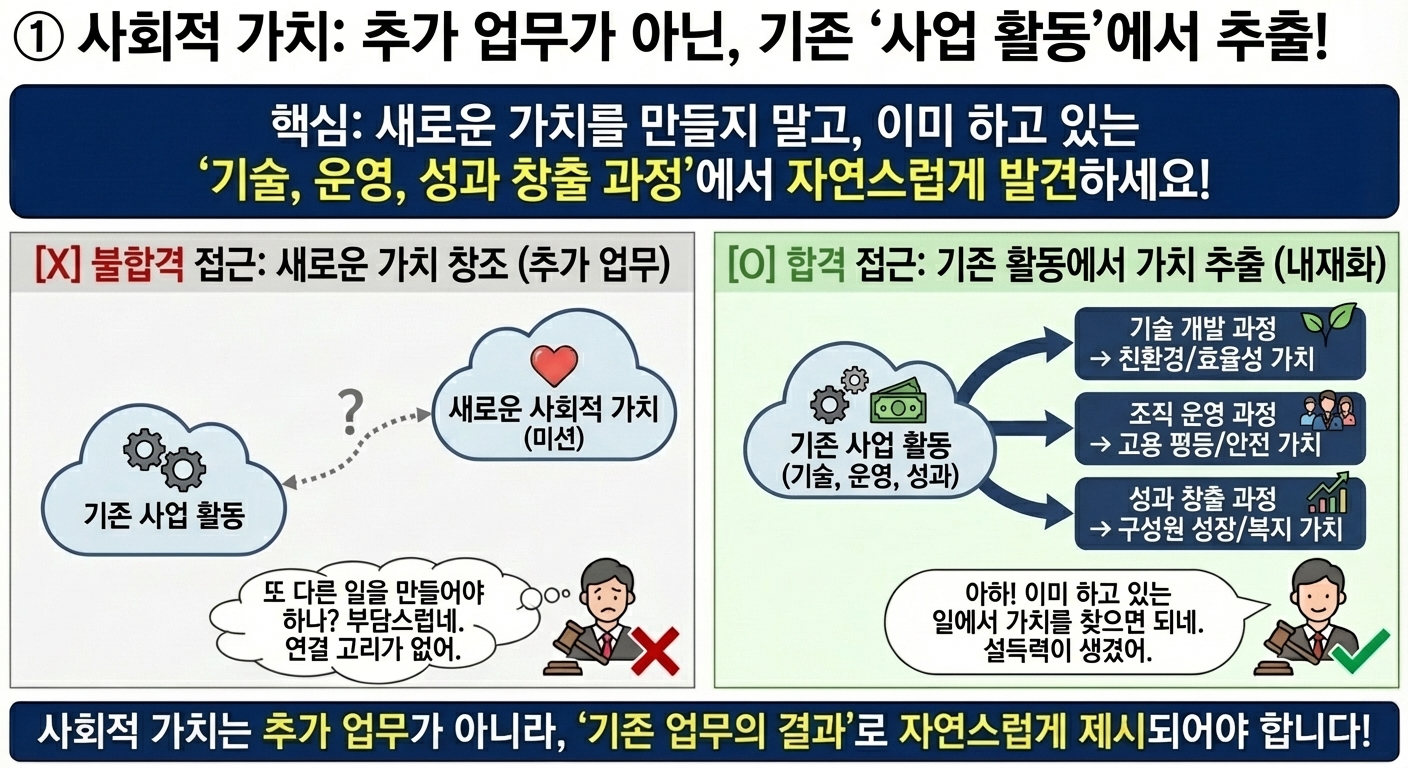 사회적 가치는 추가 업무가 아니라 기존 업무의 결과로 제시되어야 설득력이 생깁니다.