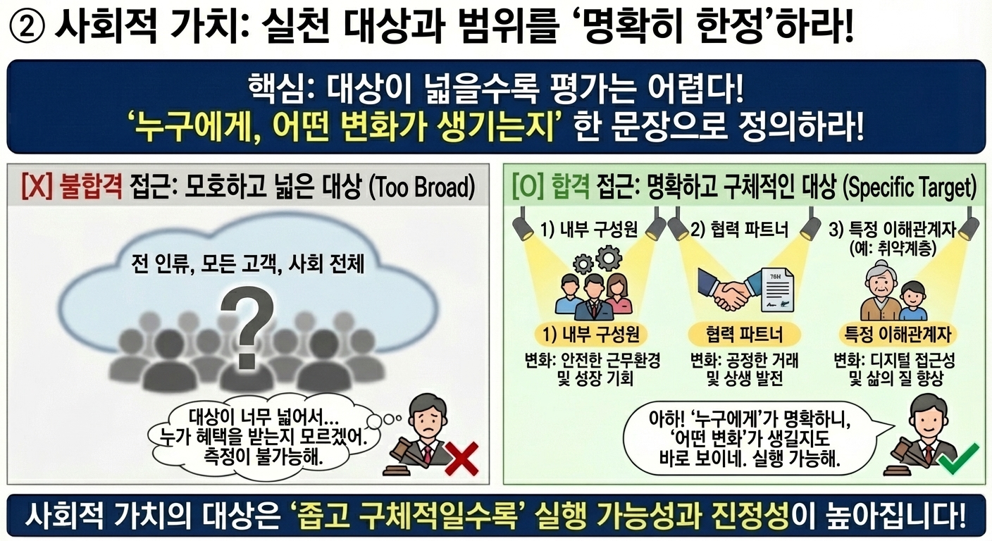 이 사례에서 사회적 가치의 핵심 대상은 불특정 다수가 아닙니다.