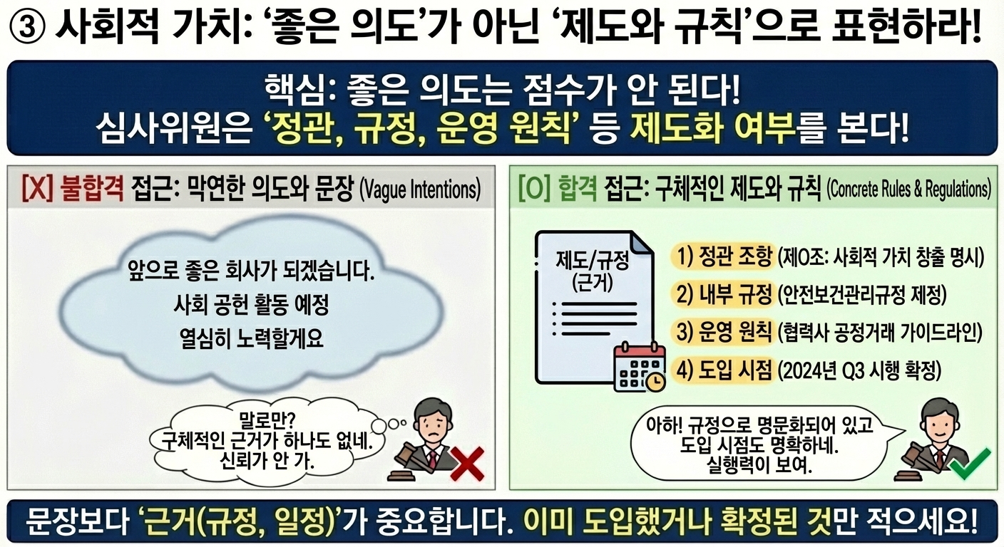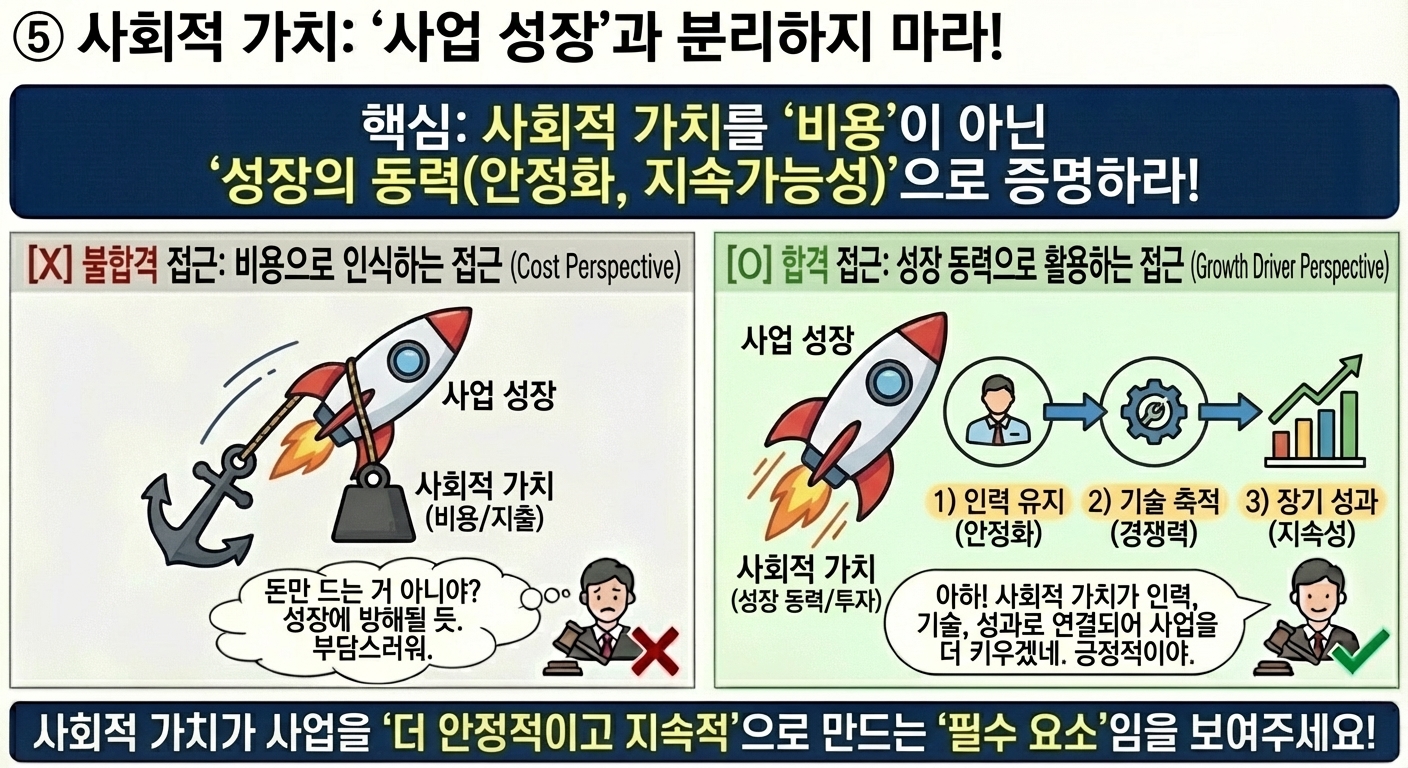 합격 사례는 사회적 가치가 사업을 안정화하거나 지속시키는 요소로 작동합니다.