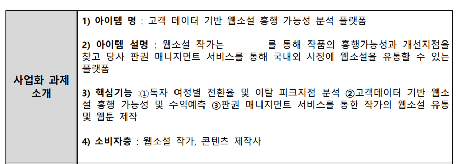 “고객 데이터 기반 웹소설 흥행 가능성 분석 플랫폼”이라는 정의만으로