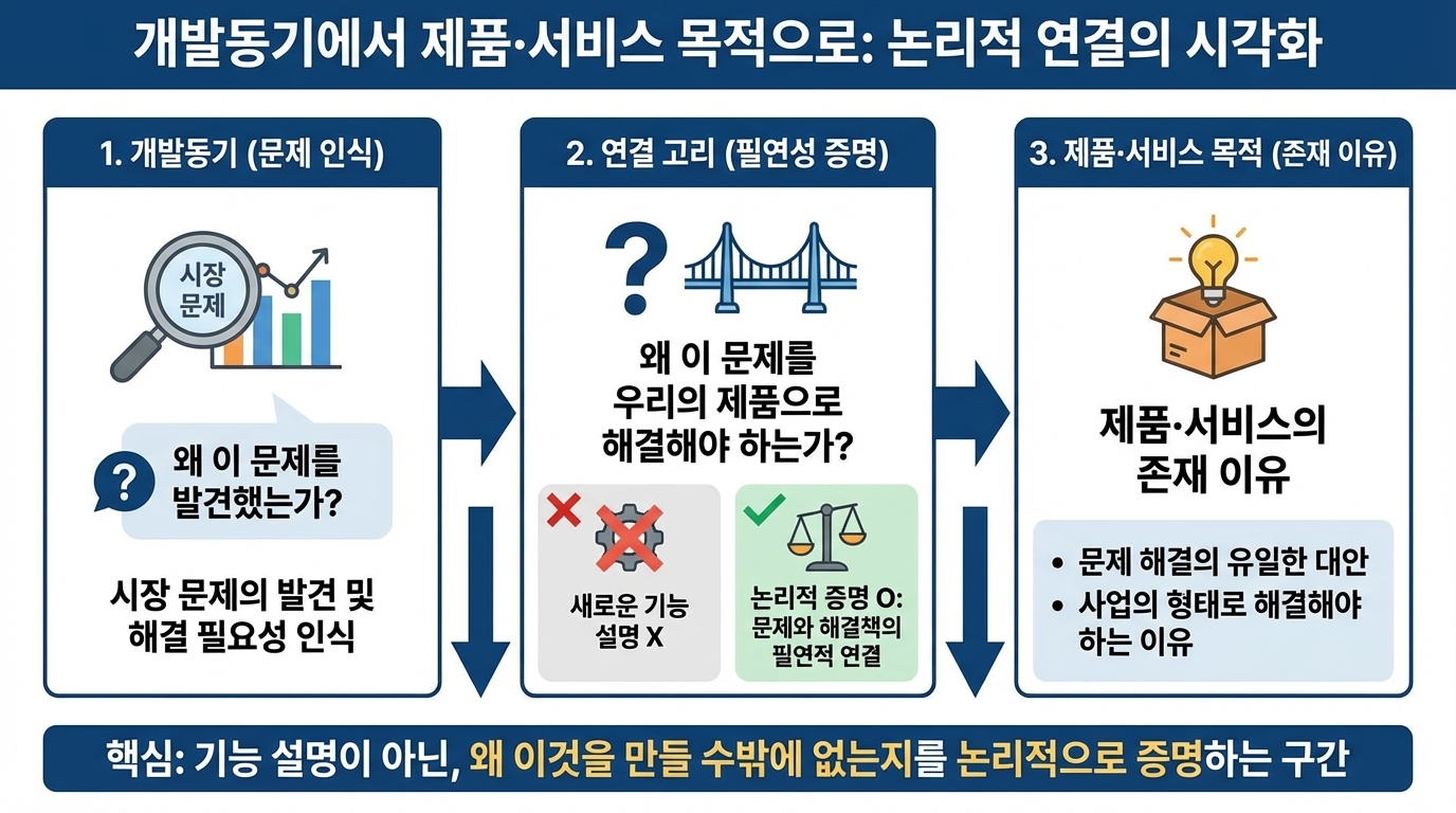합격 사업계획서에서 제품·서비스의 목적을 어떻게 논리적으로 풀어내는지를 잘 보여줍니다.