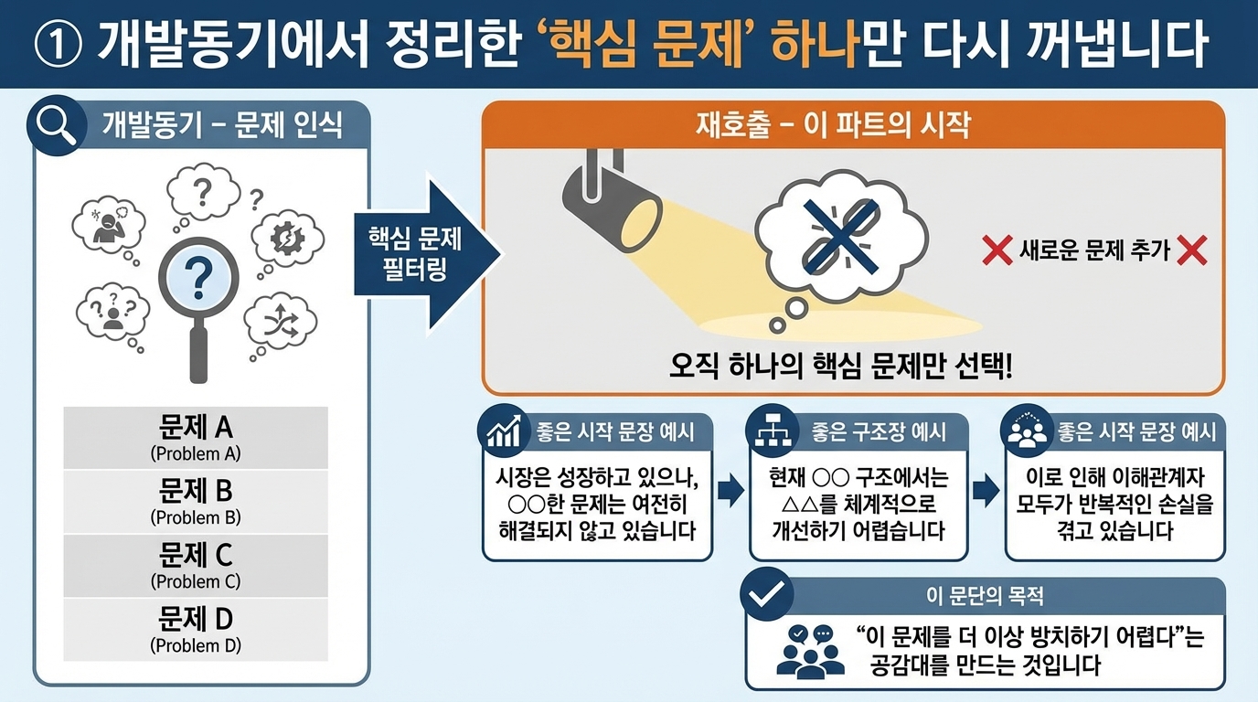 사업계획서에서 아이디어를 설명하는 파트가 아니라, 문제를 사업으로 바꾸는 전환점입니다.
