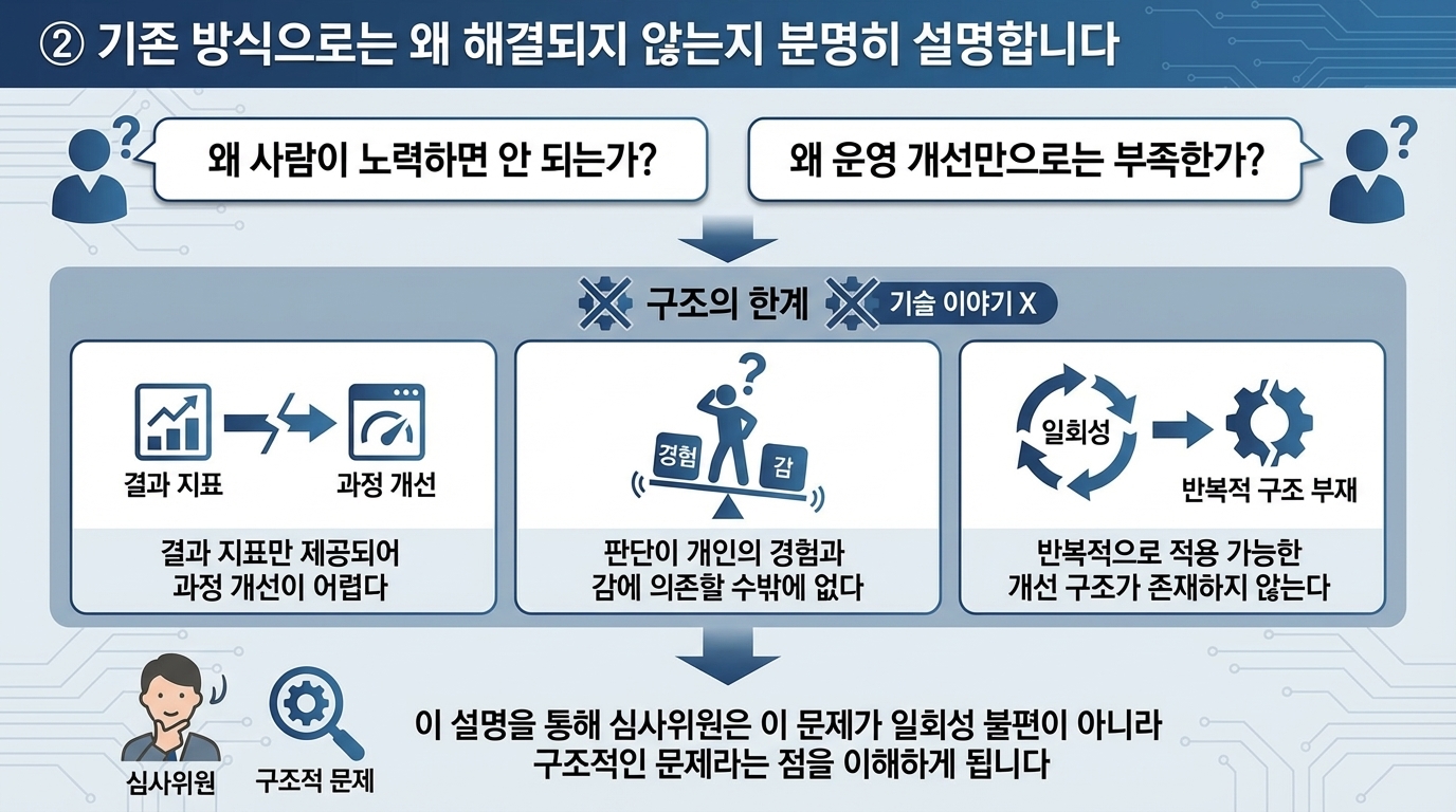 “왜 사람이 노력하면 안 되는가”, “왜 운영 개선만으로는 부족한가”를 설명해야 합니다.
