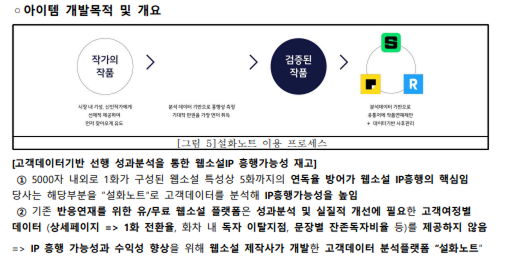 “고객 데이터 기반 성과 분석을 통해 웹소설 IP의 종합 가능성을 높인다”로 정의합니다.