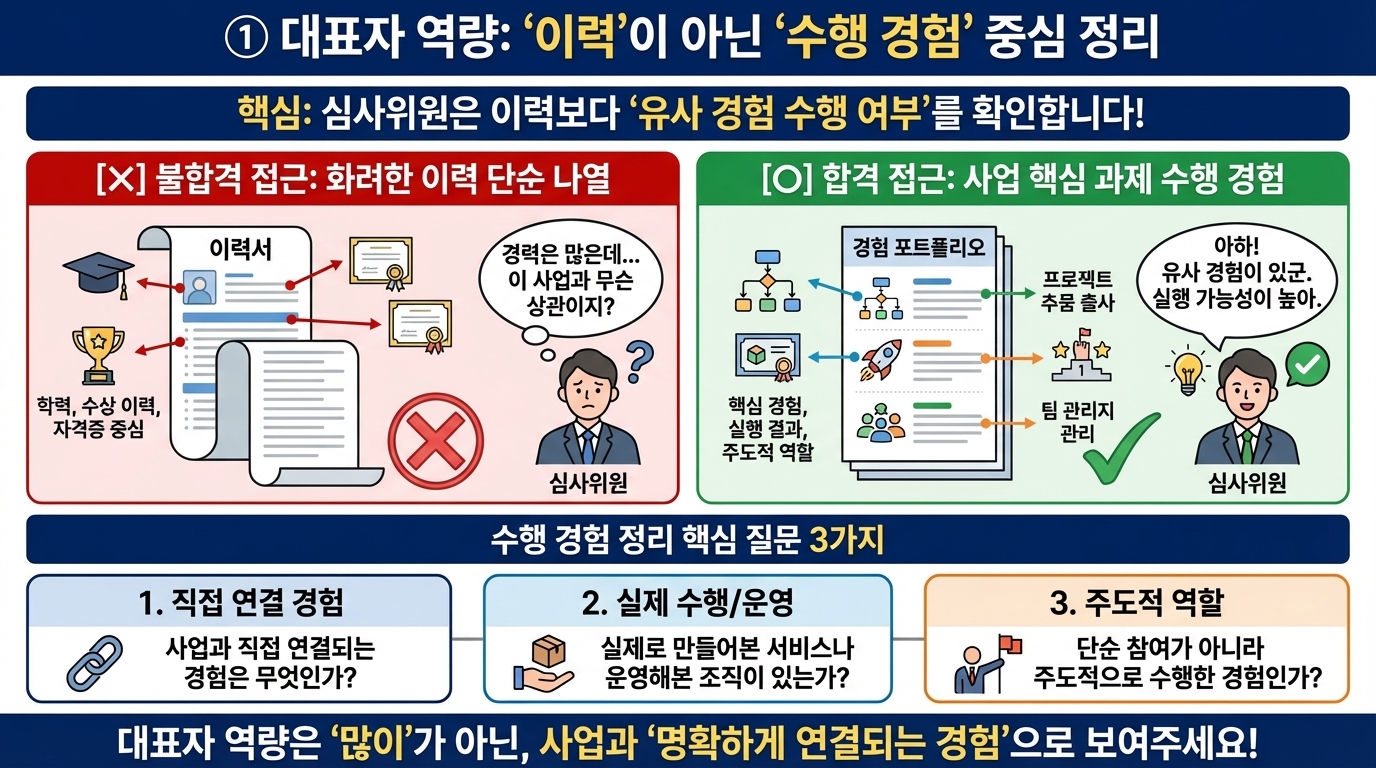 경력은 많아 보이지만, 사업 수행 능력으로 연결되지 않기 때문입니다.