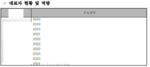 대표자의 주요 경력은 학력이나 수상 이력이 아니라,